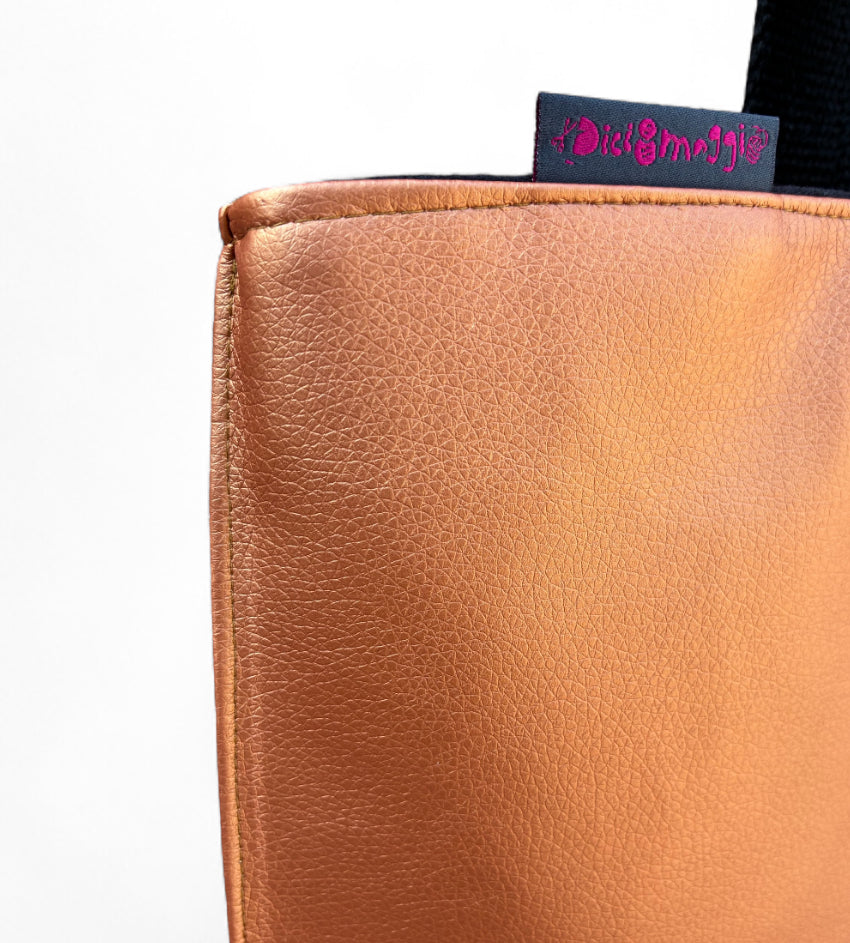Lentamente mi appassiono fino a che progetto un modello di borsa tutto mio, lo rendo double-face e negli anni lo perfeziono, sperimentando e ricercando materiali, aggiungendo accessori che rendono la mia borsa il mio cavallo di battaglia.