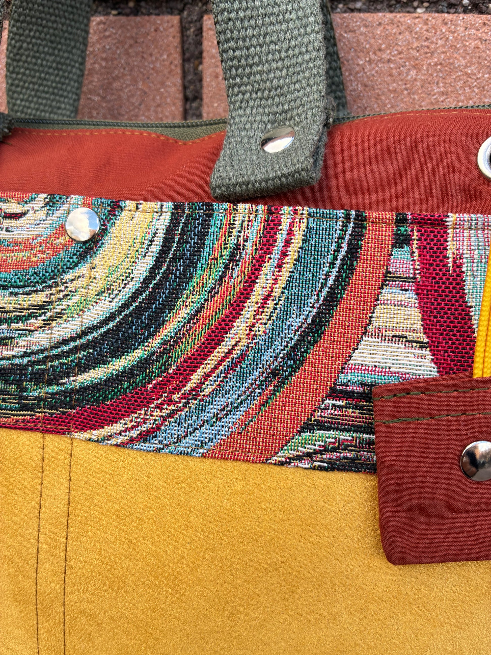 Lentamente mi appassiono fino a che progetto un modello di borsa tutto mio, lo rendo double-face e negli anni lo perfeziono, sperimentando e ricercando materiali, aggiungendo accessori che rendono la mia borsa il mio cavallo di battaglia.